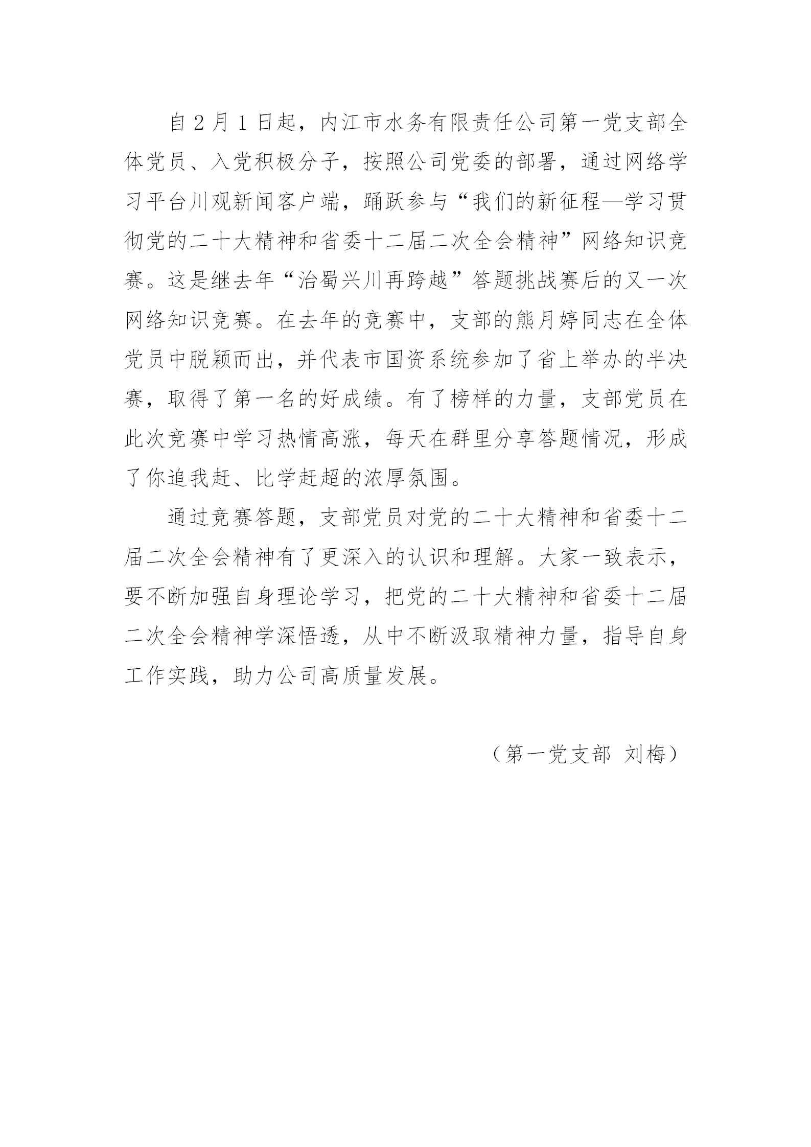 第一黨支部積極參與“學習貫徹黨的二十大精神暨省委十二屆二次全會精神”網絡知識競賽