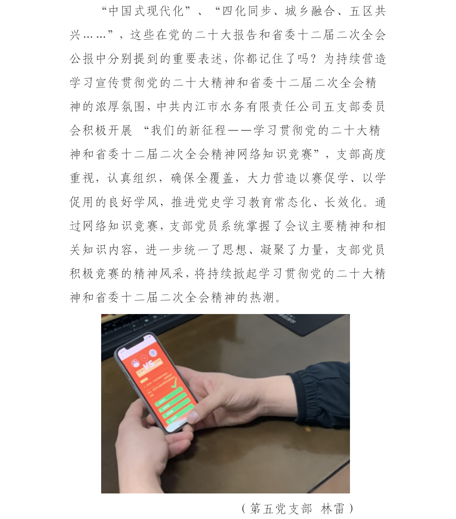 水務公司第五黨支部積極參與“黨的二十大精神及省委十二屆二次全會精神網絡知識競賽”