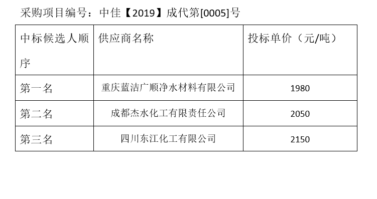 內(nèi)江市污水處理有限責(zé)任公司碳源補(bǔ)充劑和輔助消毒劑招標(biāo)項(xiàng)目(第1包)評標(biāo)結(jié)果公示