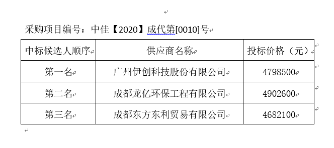 內江市污水處理監測站設備采購評標結果公示