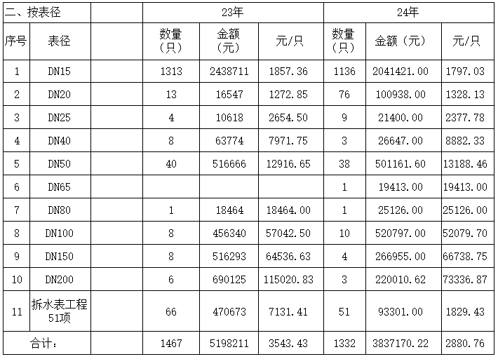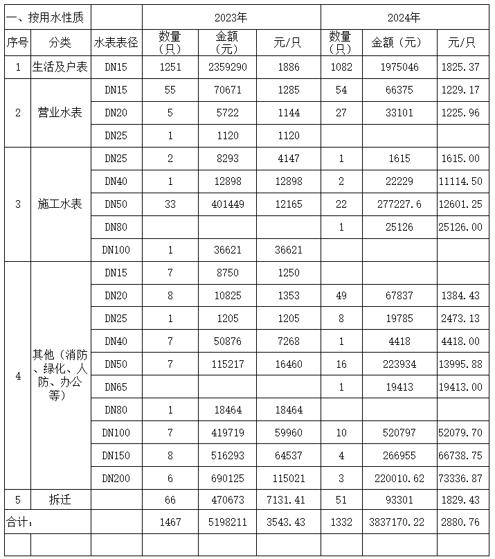 內(nèi)江市水務(wù)有限責任公司2023-2024供水安裝平均價格公示