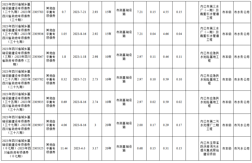 截至2024年末新增地方政府專項債券情況表