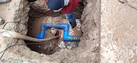 11月29日,經開區污水處理廠工作人員在巡視中發現廠區內進出水管道疑似有滲水現象。公司工程管理部接到報修電話后,立即奔赴現場進行勘察,迅速對供水管道設施進行排查,確定是污水處理廠內DN110、DN90給水管道漏水,需立即修復。