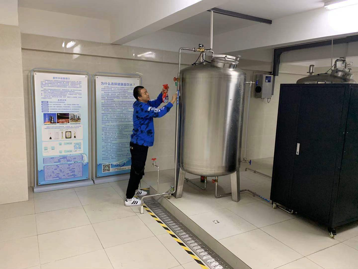 為切實做好內(nèi)江六中高新校區(qū)新學(xué)期的直飲水系統(tǒng)啟用工作,保障全校師生的飲水安全,豪鵬公司運維人員對校內(nèi)直飲水系統(tǒng)集中開展了凈水設(shè)備電器檢查、凈水軟化鹽補充、管道消毒、凈水罐體內(nèi)外和泵房環(huán)境衛(wèi)生清潔消毒,以及終端凈水設(shè)備恢復(fù)調(diào)試等系列工作,并抽取水樣送專業(yè)水質(zhì)檢測機構(gòu)檢測,檢測結(jié)果均符合直飲水飲用標(biāo)準(zhǔn)。豪鵬公司以其規(guī)范嚴(yán)謹(jǐn)?shù)闹憋嬎芾恚玫搅诵7礁叨日J(rèn)可。