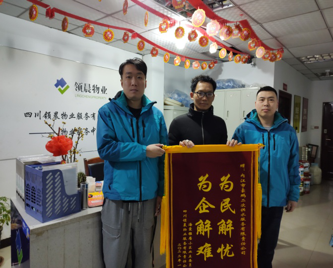 “我們小區(qū)二次加壓設(shè)備運行異常,樓棟的9-18層已經(jīng)停水2天了,請你們幫我們檢查下……”。1月24日下午14時,東興區(qū)海棠雅居物業(yè)工作人員向市水務(wù)公司豪鵬二次供水公司打來求助電話。經(jīng)查,該小區(qū)二次供水設(shè)施老舊,設(shè)備常年未進行維護保養(yǎng),導(dǎo)致設(shè)備故障和中區(qū)出水管止回閥銹蝕堵塞。該小區(qū)二次供水設(shè)備尚未移交豪鵬公司管理,加之臨近春節(jié),物業(yè)專業(yè)維修人員缺乏,本著保障群眾用水安全的初心,豪鵬公司立即組織開展供水搶修工作,于當(dāng)日18時完成搶修并恢復(fù)正常供水。小區(qū)業(yè)主委員會、業(yè)主和小區(qū)物業(yè)對市水務(wù)公司“為群眾辦實事”優(yōu)質(zhì)服務(wù)點贊,被授予錦旗“為民解憂 為企解難”。