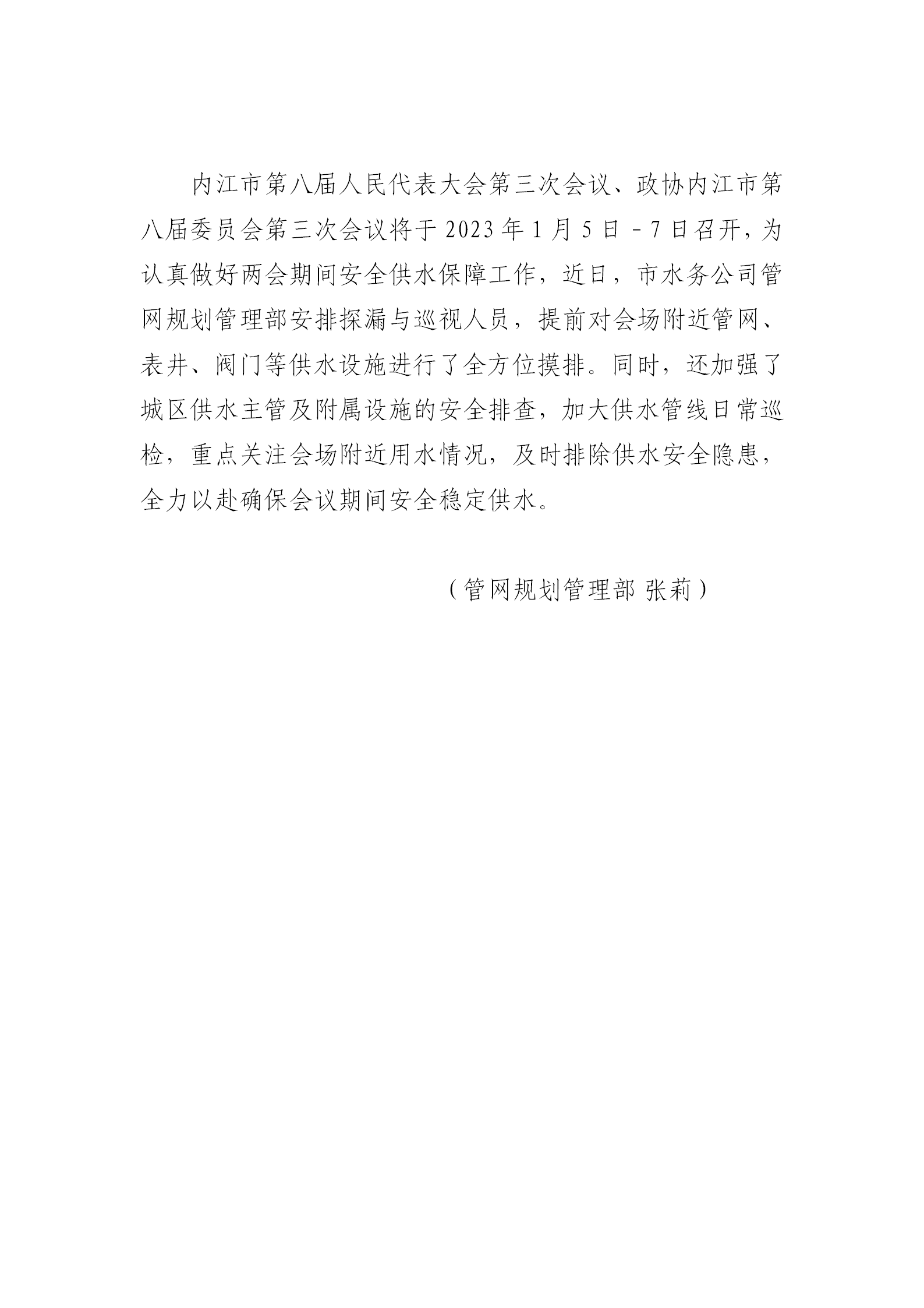 安全穩(wěn)定供水 兩會(huì)順利召開