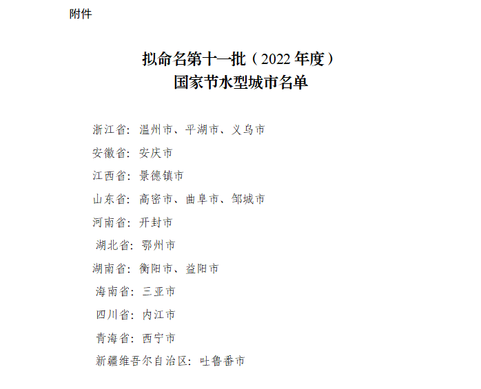 關(guān)于擬命名第十一批(2022年度) 國家節(jié)水型城市的公示