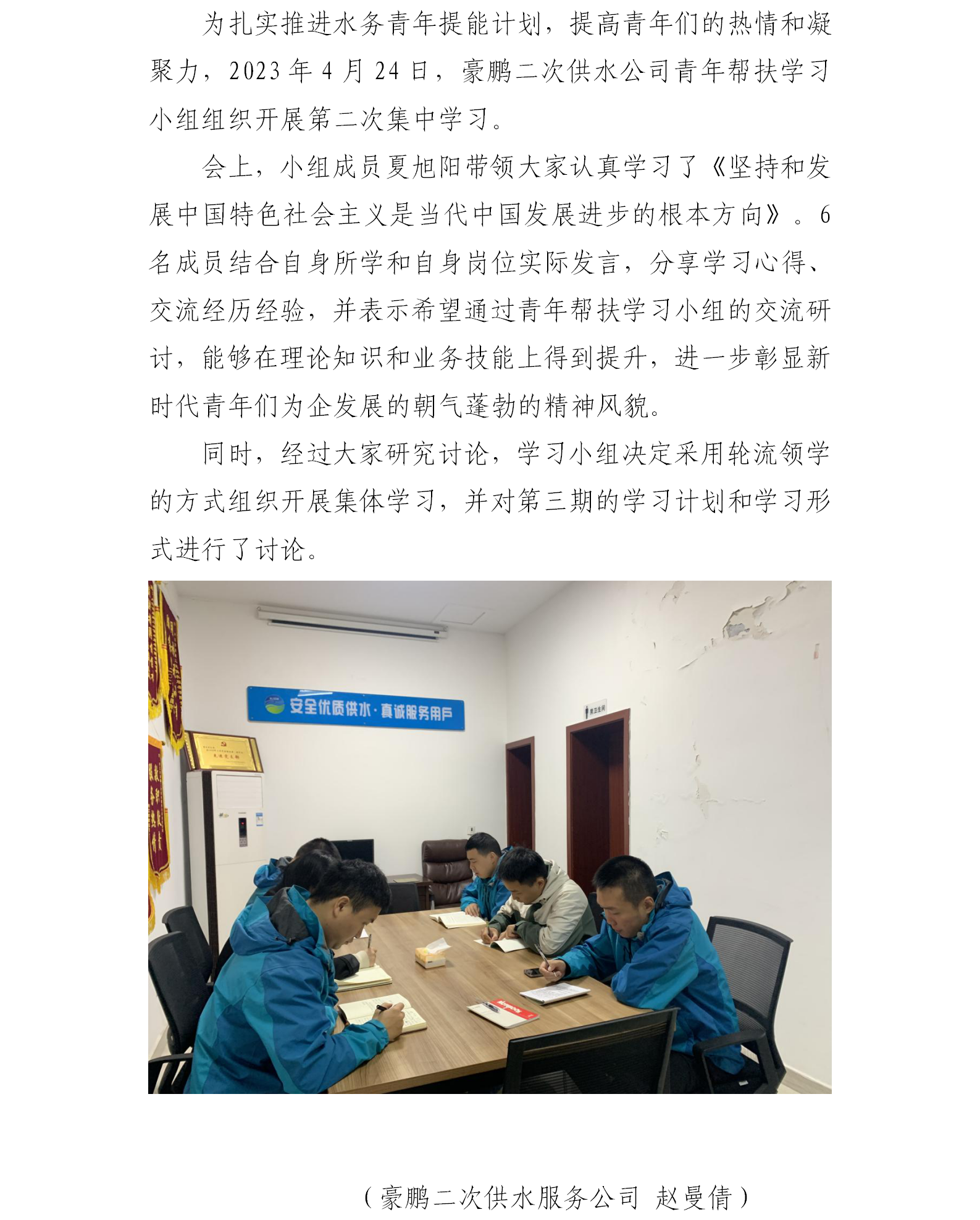 豪鵬二次供水公司青年幫扶學習小組開展第二次集中學習