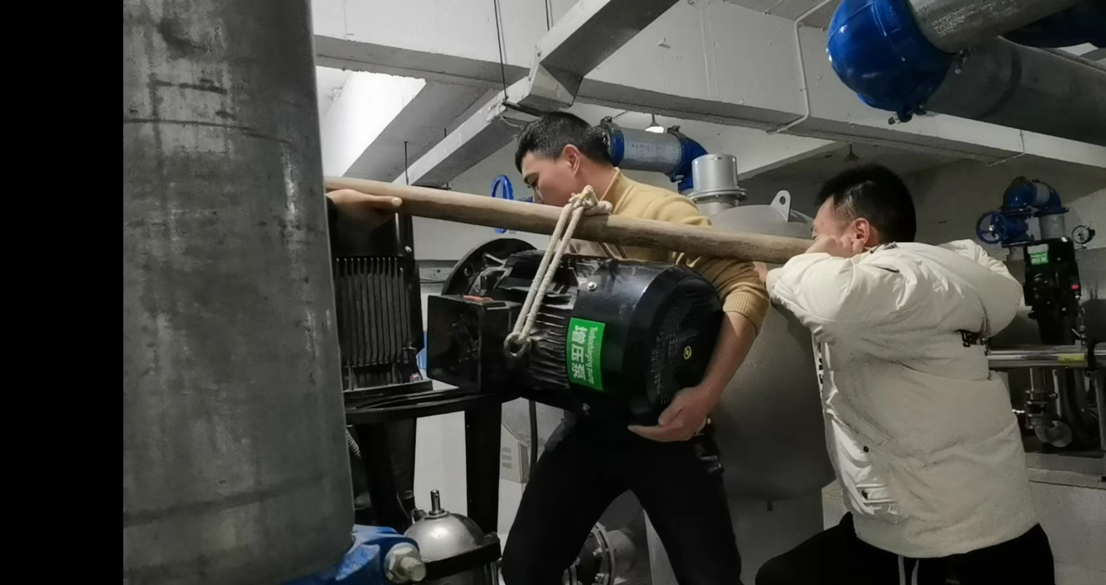 豪鵬公司加大了二次供水泵房的巡檢力度,全力保障各小區(qū)的用水安全。近日,在巡檢過程中巡檢人員劉靈漾發(fā)現(xiàn)春天公園城小區(qū)的水泵運行出現(xiàn)聲音異常,存在安全隱患,維修人員夏旭陽及時趕赴春天公園城小區(qū)泵房。經(jīng)多番細致檢查,發(fā)現(xiàn)異響聲音原因來源于泵體內(nèi)部的葉輪磨損導致,維修人員隨即對泵體內(nèi)部葉輪進行更換。夏旭陽、劉靈漾將重達300斤的增壓泵抬起、歸位、試機,異響消除 ,安全隱患得以解決。